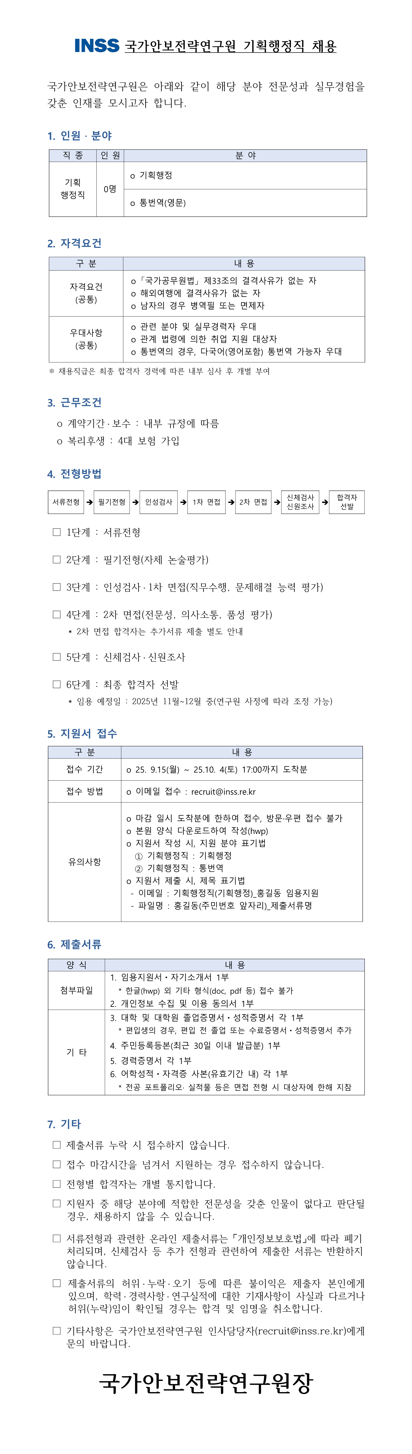 [채용공고] 국가안보전략연구원 기획행정직 채용